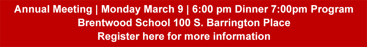 The Brentwood Homeowners Association Annual Meeting will be held on Monday, March 9 at Brentwood School’s East Campus (100 S. Barrington Place). Dinner begins at 6:00 PM, followed by the program at 7:00 PM. We are honored to welcome Mayor Karen Bass, Congressman Brad Sherman, City Attorney Hydee Feldstein-Soto, Councilwoman Traci Park, LAFD Fire Chief Jaime Moore, and LAPD. Chief Jim McDonnell. This year’s discussion will be moderated by ABC7’s Josh Haskell.